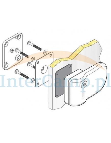 Zamek ścienny, montowany do ściany pojazdu za pomocą 4 wkrętów samogwintujących.