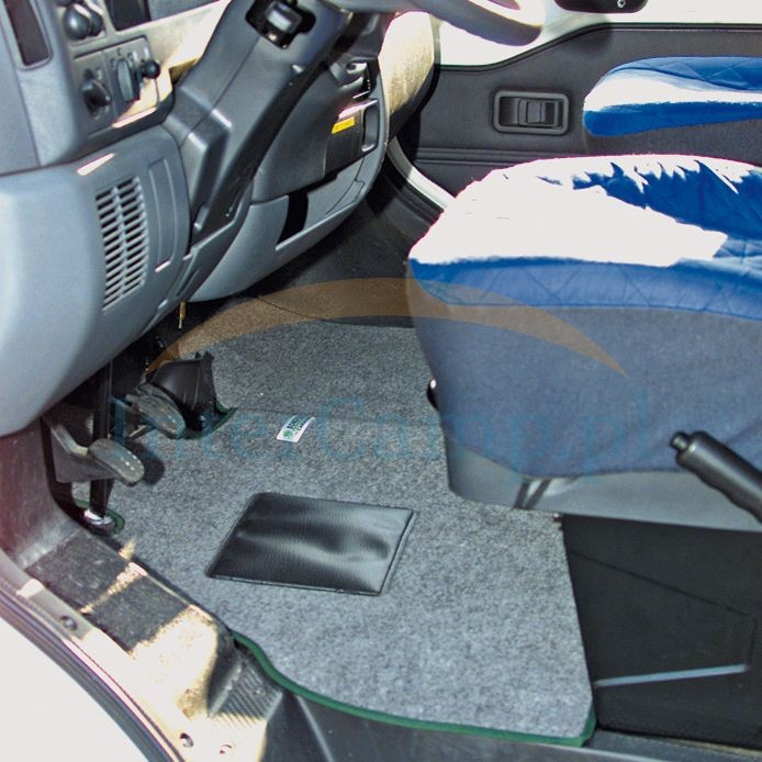 Wysokiej jakości wykładzina w kabinie kierowcy wykonana z włókien syntetycznych ze wzorem żeber. Trwała konstrukcja ze wzmocnieniem pięty. Dopasowane do konkretnych modeli. Dodatkowe owinięcie wokół kolumny kierownicy.