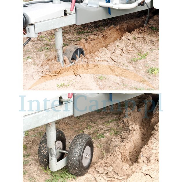 Zestaw do konwersji podwójnego koła kopiującego do łatwego i bezpiecznego manewrowania na wszystkich powierzchniach. Chroni to napęd manewrowy przed zużyciem. Zestaw zawiera dodatkowy materiał montażowy.