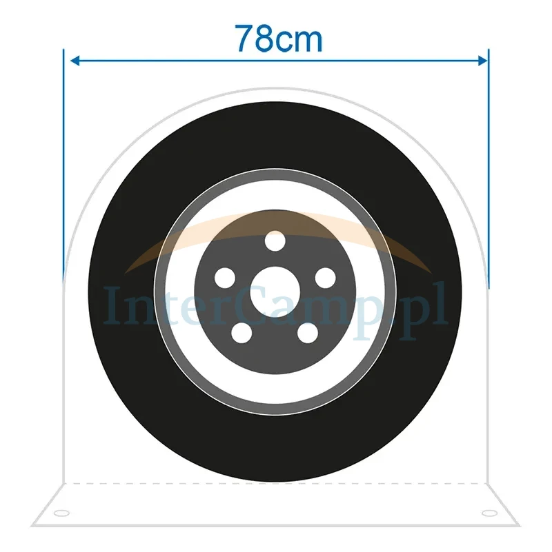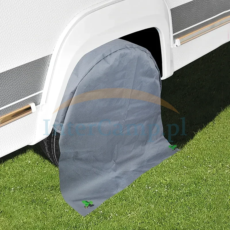 Osłona koła do ochrony przyczep kempingowych lub samochodów kempingowych przed zniszczeniem i uszkodzeniem spowodowanym długotrwałym nasłonecznieniem i promieniami UV.