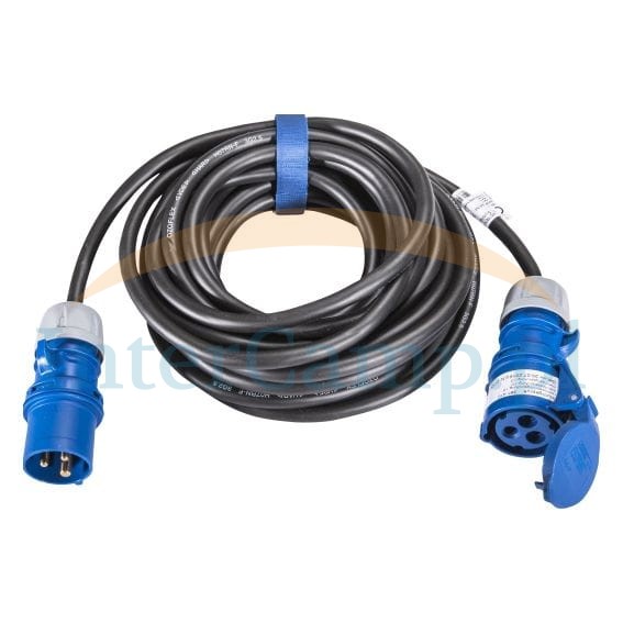 Wytrzymały wąż gumowy do użytku wewnątrz/na zewnątrz. Przyłącza: złącze CEE, wtyczka CEE. Do podłączania bębnów kablowych do przyczep kempingowych. Kabel H07RN-F 3G2,5mm².