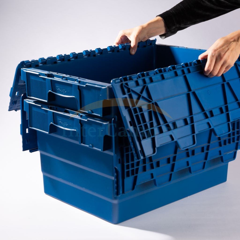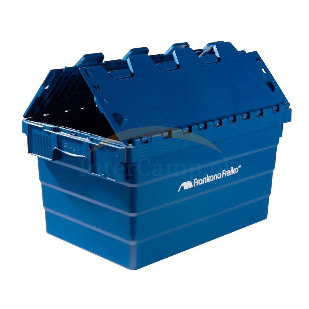 Skrzynka plastikowa do układania w stosy do gniazdowania o pojemności 60 l i ładowności do 35 kg. Dwuczęściowa pokrywa na zawiasach umożliwia łatwy załadunek i rozładunek. Ściany boczne i spód skrzyni transportowej są całkowicie zamknięte. Solidne plastikowe pudełko można łatwo układać w stosy przy zamkniętej pokrywie. Dzięki lekko stożkowemu korpusowi skrzynia transportowa FF zyskuje również punkty, jeśli chodzi o oszczędność miejsca podczas przechowywania i pusty transport. Skrzynie transportowe z otwartą, składaną na boki pokrywą są po prostu zagnieżdżane w sobie.
